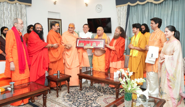मुख्यमंत्री धामी ने शासकीय आवास पर किया संत समाज के दिग्गजों का स्वागत