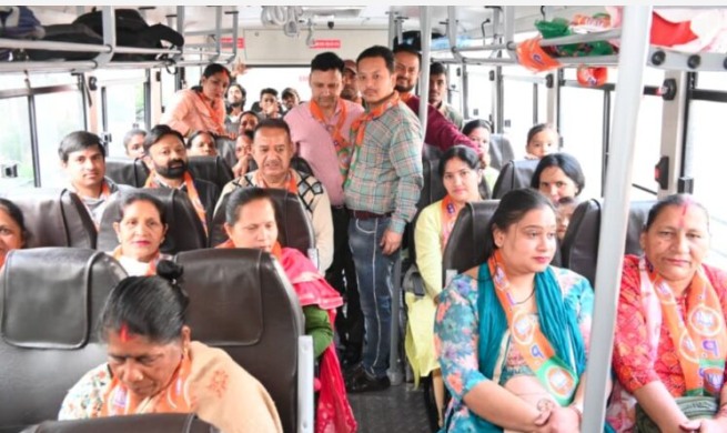 इस अवसर पर कैबिनेट मंत्री गणेश जोशी स्वयं बस में भारतीय जनता