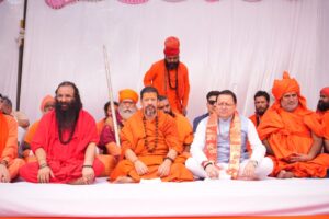 इस अवसर जूना अखाड़ा के महामंत्री हरिगिरी महाराज ने कहा कि मुख्यमंत्री पुष्कर सिंह धामी के नेतृत्व में प्रदेश प्रगति के पथ पर अग्रसर हो रहा है तथा उन्होंने कई ऐतिहासिक महत्वपूर्ण निर्णय लिये हैं जो अन्य प्रदेशों के लिए भी उदाहरण बने हुए हैं। उन्होंने कहा कि ताकत उसी के हाथ में अच्छी लगती है जो निर्भिक निडर एवं सहास के साथ आगे बढ़ते हुए देश एवं समाज की आन बान शान को कायम रखने में समर्थ हो। उन्होंने कहा कि उत्तराखण्ड देश का पहला राज्य है जहां समान नागरिकता संहिता कानून लागू करने के साथ ही भू कानून भी लागू किया गया है जिससे प्रदेश की भूमि सुरक्षित हुई है। निरंजनी आखाड़ा के पीठाध्ीश्वर कैलाशानंद गिरी महाराज ने कहा कि प्रदेश के मुख्यमंत्राी संतो का आदर करते हुए सनातन के लिए कार्य कर रहे है। कार्यक्रम का संचालन अखाडा परिषद के अध्यक्ष रविन्द्र पुरी महाराज द्वारा किया गया।