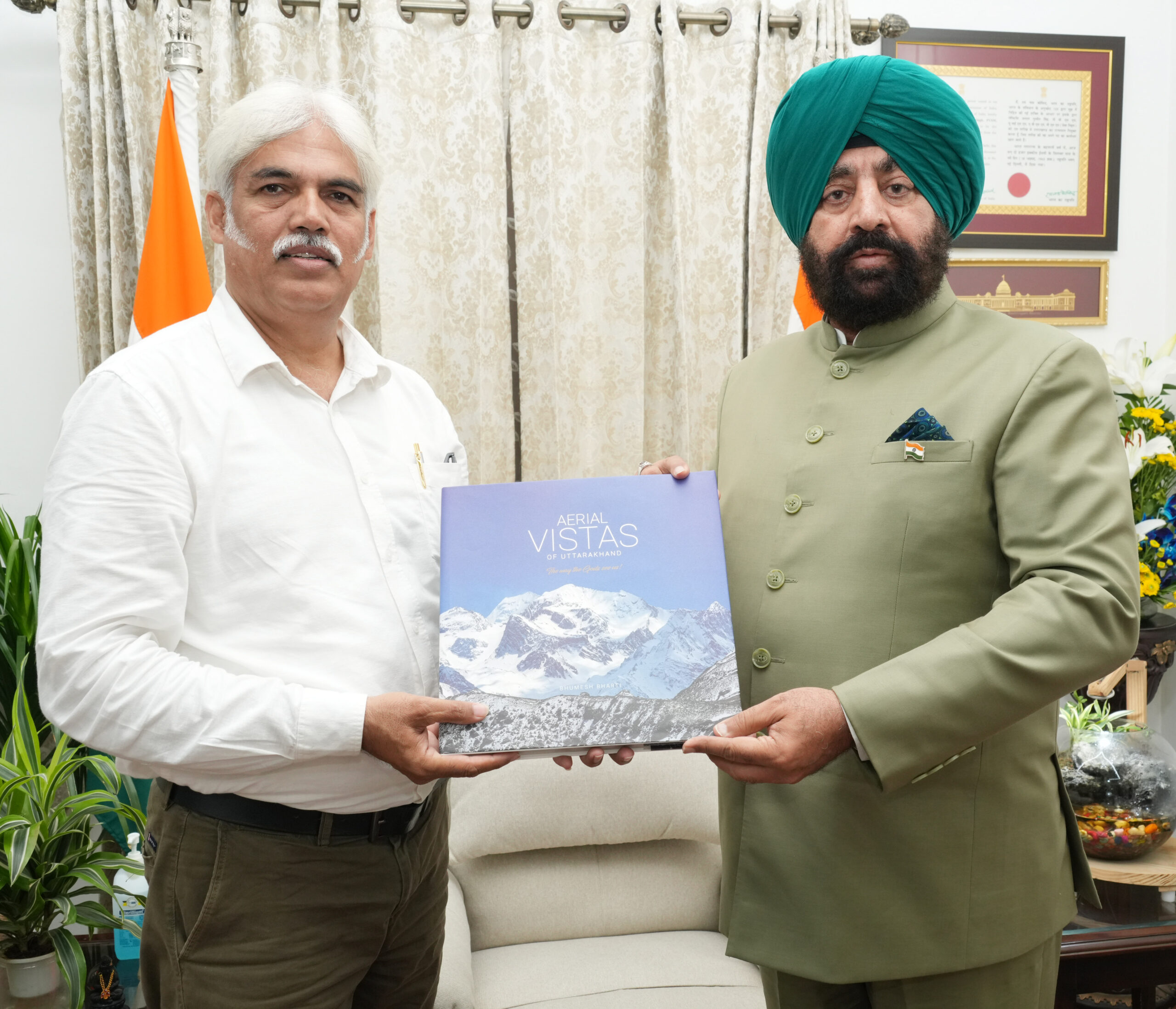 देहरादून; राज्यपाल लेफ्टिनेंट जनरल गुरमीत सिंह से नि से राजभवन देहरादून में फोटोग्राफर भूमेश भारती ने शिष्टाचार मुलाकात कर अपनी नवीनतम कॉफी टेबल बुक ‘एरियल विस्टास ऑफ उत्तराखण्ड’ भेंट की। इस संकलन में भारती द्वारा हवाई यात्रा के दौरान लिए गए उत्तराखण्ड के प्रमुख स्थलों के एरियल फोटोग्राफ्स को प्रस्तुत किया गया है, जो राज्य की प्राकृतिक सुन्दरता और भौगोलिक विविधता को अत्यंत आकर्षक रूप में दर्शाते हैं।