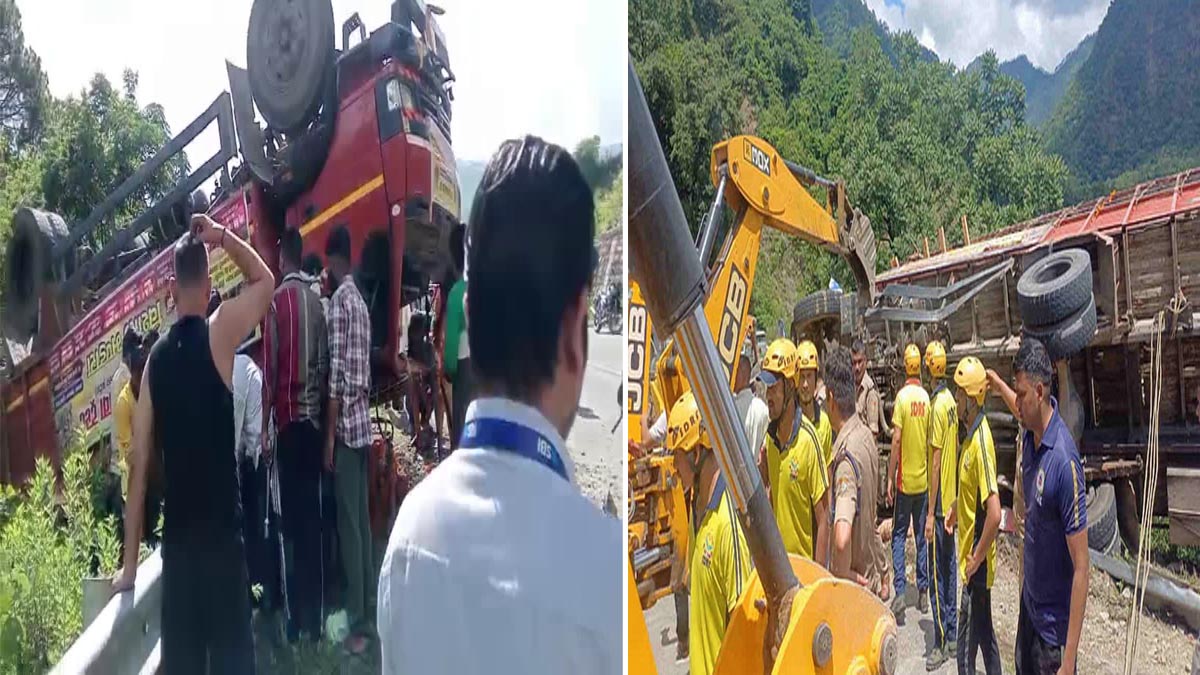 देहरादून; टिहरी जिले में रिषिकेश-गंगोत्री हाईवे पर जाजल और फकोट के बीच कांवड़ यात्रियों से भरा ट्रक पलट गया। दुर्घटना में अब तक तीन लोगों की मौत हो चुकी है, जबकि 16 यात्री घायल हुए हैं। ट्रक में कुल 18 कांवड़ यात्री सवार थे, जो रिषिकेश से गंगोत्री की ओर जा रहे थे। जिला आपदा प्रबंधन अधिकारी बृजेश भट्ट ने जानकारी दी कि हादसे में एक व्यक्ति की मौके पर ही मौत हो गई थी, जबकि दो अन्य यात्री ट्रक के नीचे दबे मिले। गंभीर रूप से घायल चार यात्रियों को एम्स रिषिकेश रेफर किया गया। आठ लोगों का उपचार नरेंद्र नगर सामुदायिक स्वास्थ्य केंद्र में और एक व्यक्ति का प्राथमिक स्वास्थ्य केंद्र फकोट में इलाज चल रहा है। दुर्घटना की सूचना मिलते ही राहत और बचाव कार्य तुरंत शुरू कर दिए गए।
